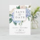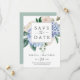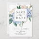 Den här eleganten blåvita vattenpass om du sparar datumkortet är perfekt för vår eller sommar-bröllop. Den klassiska blommigten är utformad med mjuka pulverblåa vattenfärgsvätskor som accentueras med neutraltens blommor och grönt löv.