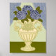 Elegant Blue Hydrangeas in Classical Golden Urn Poster
