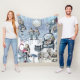 Elegant Blue Ice Alice i Wonderland Silver Glitte Fleecefilt