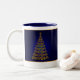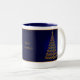 Drick drycken i den här festliga eleganten guld träd mugg med blå bakgrund och säger God jul.