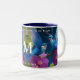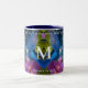 Elegant Blue Lila Funny Hummingbird Monogram på Två-Tonad Mugg