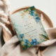 A refined botanical design featuring hand-painted blue lilies, soft sage textures, and shimmering gold accents. Vintage florals blend with a modern romantic palette, creating an elevated look perfect for an elegant garden or outdoor celebration. Subtle marble undertones and intricate detailing frame your event text beautifully, offering a timeless, graceful, and sophisticated aesthetic. Ideal for couples who love artistic, nature-inspired styling with a luxurious touch.