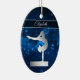 Den här elegantens prydnadsföremål har en kvinnlig silver-gymnastik på en baljstråle mot en söt blå bakgrund med liten stjärnig ljus. Hennes namn är i silver på en halvgenomskinlig banderoll som är inramad i vit faux glitter. Baksidan av dekorationen har samma blå bakgrund med fyra anpassningsbar fält. Perfekt till den dotter, barndotter eller systerdotter som är gymnast.