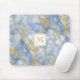 Elegant Blue Marble Monogram Faux Guld Glitter Musmatta