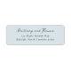 This elegant label features a clean, minimalist design with a soft pastel blue background and rich muted green text. The layout is centered, showcasing a cursive script for names and a serif font for addresses, creating a sophisticated balance. Perfect for formal occasions, the design exudes tranquility and refinement, making it ideal for weddings or special events. Its customizable nature allows for personalization while maintaining an understated elegance that complements any setting.