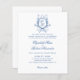 Den här bröllopsinbjudan har en klassisk utformning och elegant med ett förfinat blått och vitt färg-schema. Centrumbiten är en sofistikerad monogramslimmad vapensköld som ger en personlig. Inbjudningsinformationen visas i ett skript och seriftypsnitt för eleganten, där inslag kombineras med traditionellt och tidslöst för att skapa ett vackert tillkännagivande för din speciella dag.