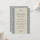 En smakfull inbjudan från elegant bröllop med en blå och beige vintage baroque mönster överlagd med ett samordnande indrag av två tonerbeige rand. Ett matchande blått färg kompletterar designen. Hela texten i inbjudan kan anpassas till önskad ordalydelse. Det traditionella klassiska stil gör det till ett underbart val för bröllop under vilken årstid som helst.