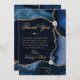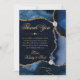 Elegant Blue och Guld Glitter Agate Bröllop Tack Kort