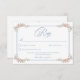 Step into a world of timeless elegance with our exquisite Baroque wildflower wedding response card with a QR code on the back. Soft pastel watercolor blooms adorn the edges. Your wedding details appear in dusty blue, in sophisticated harmony. Perfect for couples who seek an invitation that whispers luxury, romance, and the charm of old-world grandeur. Let your wedding begin with a design as breathtaking as the day itself. Created by Simply Farmhouse Press.