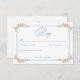 Step into a world of timeless elegance with our exquisite Baroque wildflower wedding response card without dinner choices. Soft pastel watercolor blooms adorn the edges. Your wedding details appear in dusty blue, in sophisticated harmony. Perfect for couples who seek an invitation that whispers luxury, romance, and the charm of old-world grandeur. Let your wedding begin with a design as breathtaking as the day itself. Created by Simply Farmhouse Press.