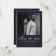 Elegant mörk midnatt blått ett foto bröllop spara datum meddelande. Visa den vackra bröllop-samlingen för att samordna bröllopsinbjudningar och nya moderna färg-alternativ.