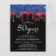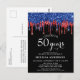 Elegant Blue Red Black Glitter Drip 50:e födelseda Vykort