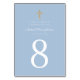 Elegant Blue Religious Cross Boy First Communion Table Number.