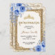 Elegant Blommigt Quinceanera Inbjudan Elegant Blue Ro Blommigt Guld Mis Quince-inbjudan