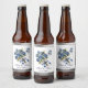 Elegant Blue Roses and Butterfly Silver Wedding Ölflaska Etikett
