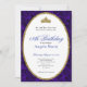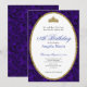 This elegant blue floral 18th birthday debut invitation has blue roses, a gold tiara crown, and a gold glitter oval with a personalizable template to create your own message. The invitation template is customizable in the listing editor and is also available as a digital download that's printable after you personalize it. The back has blue roses covering the entire surface to create and classic and classy mood for your event.