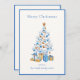 Elegant Blue Script Watercolor Christmas Tree Julkort