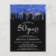 Elegant Blue Silver Black Glitter Drip 50 födelsed Inbjudan Vykort