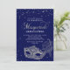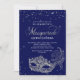 Elegant Blue Silver Glitter Masquerad Quinceañera Inbjudningar