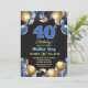 Elegant Blue Silver Gold 40th Birthday Photo Inbjudningar