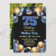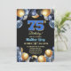 Elegant Blue Silver Gold 75th Birthday Photo Inbjudningar
