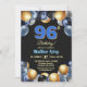 Elegant Blue Silver Gold 96th Birthday Party Inbjudningar