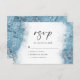 Kant i denna elegant har den moderna OSA kort en ljusblå vattenfärgsformgivning gräns i en kopia av marmor som är vedad med faux-silver folie, som gradvis tonas ner i den vita bakgrunden. Brev "osa" visas i handskriftsskript för kol-grått. Svarsdatum och anpassadets ordalydelse finns i texten från kol-grått-serif. Den omvända sidan har en matchande design för blå marmor och silver.