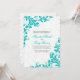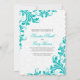 Elegantens blå grönt blommigt snöre snurrar över vit blommigt, damasker mönster, bröllopsinbjudan.