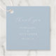This wedding favor tag features a minimalist and elegant design with a soft blue background, creating a calming and serene atmosphere. The layout is simple, with ample negative space that highlights the white text in both cursive and sans-serif fonts, adding variety while maintaining cohesion. Perfect for expressing gratitude at formal occasions, this tag combines sophistication and understated style, making it ideal for weddings or other celebratory events.