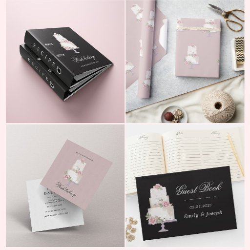Våra "Elegant Three Tier Cake Bakery"-samlingar har företagspaterier med kakaoillustrationer och blommigtar med olika matchande bakgrunder. Sök efter fler objekt från den här samlingen i vår butik och kontakta oss om du har några speciella förfrågningar.