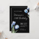 Elegant Blue & Black Tulip 25th Birthday Invitation | Modern Classy Floral Party Invite