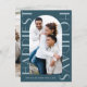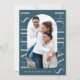 Den här contemporaryn har två gratulationskort för foto med elegant i blå och stor typografi. Visa denna moderna monokrom helgdag för ytterligare färg och samordning av sändningstillbehör.