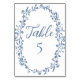 Elegant Blue Vintage Blommigt Bröllop Bordsnummer