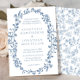 Elegant Blue Vintage Blommigt Bröllop Inbjudningar