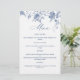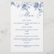 Elegant Blue Vintage Flowers Bröllop Midmeny