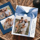 Fira säsongen i stil med elegantens julkort med en häpnadsväckande blå vattenfärg mot en vit bakgrund. Anpassa designen genom att lägga till lodräts familjefoto i en unik offsetlayout. Din Julhälsningar visas i klassiskt blått serif-tecken, tillsammans med din familj namn i ett handskript för elegant. Med plats för ytterligare två foton på baksidan kan du med det här kortet ännu mer omhuldade minnen. Perfekt för att sprida festlig glädje samtidigt som du visar din personliga beröring.