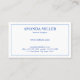Lägg till din monogramsstart över en elegant geometrisk mönster i förreglande skalor som sträcker sig från mörk till ljusblå och bakåt. De preussiska färglinjerna med blå vattenfärg i fläkt-formerna visar variationer i färg. Lägg till ditt namn på affärskortet och anpassa jobbtitel/specialitet/företag, webbplats och kontaktinformation. Perfekt för formgivare eller andra yrken i insida. Om du vill visa målningen Prussian Blue Watercolor Mönster som reproduceras på andra objekt klickar du på länken "Rocklawn Arts" nedan. Vattenfärgning på papper vattenfärg, skannad, digitalt sammansatt. Copyright ©Claire E. Skinner. Alla höger reserverade.