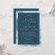 This elegant wedding invitation features a sophisticated design with a watercolor effect in shades of blue and white, creating a serene cloud-like appearance at the top. The lower section is a solid deep navy color, providing a striking contrast that highlights the formal serif typography used throughout. Customizable text fields allow for personalization, while the overall layout ensures clarity and readability, making it perfect for a classic and refined wedding celebration. The mood conveyed is one of elegance and formality, ideal for marking this significant life event.