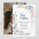 Informera dina vänner och nära och kära om ditt kommande bröllop med den här eleganten dammiga blå och vita blommigten bröllop spara-date. Med anpassadet kan du enkelt lägga till de uppgifter som behövs. Ditt favoritfoto av dig och din älskade kan finnas på baksidan och skapar denna spara-till-datum-helt unika. Det finns en mängd olika pappra typer och stilar i hörnet för dina unika inbjudningar, tillsammans med möjligheten att ladda ned om du föredrar ett digitalt format.