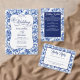 Elegant Blue White Blommigt Toile Bröllop Presentetikett