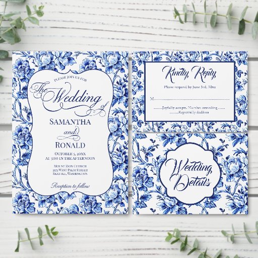 Blue and White Floral Toile Wedding ItemsDesignad av Lola F