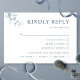 Elegant och minsta vita och blå stil-OSA kort med möjlighet att lägga till eller inte välja måltider. Utformning med contemporary, modern blå typografi och subtila, handritade, botaniska detaljer. Om du hellre vill ha den här OSA kort utan måltider raderar du bara alla tecken från en textruta med måltider och användor den sista textrutan för mall för att lägga till ett meddelande som du vill (d.v.s. "Hoppas att du klarar det, inte väntar på att se dig där") eller ditt namn och din händelse. En del av vår insamling "Modern Elegant Typography Blue Bröllop" med olika samordningsprodukter tillgängliga, inklusive kuvert för OSA. Besök hela samlingen på: https://www.zazzle.com/collections/modern_elegant_typography_blue_wedding_collection-119316758339581837