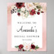 Elegant Blush burgunder boho blommig välkomstskylt bröllopsdusch 8x10,