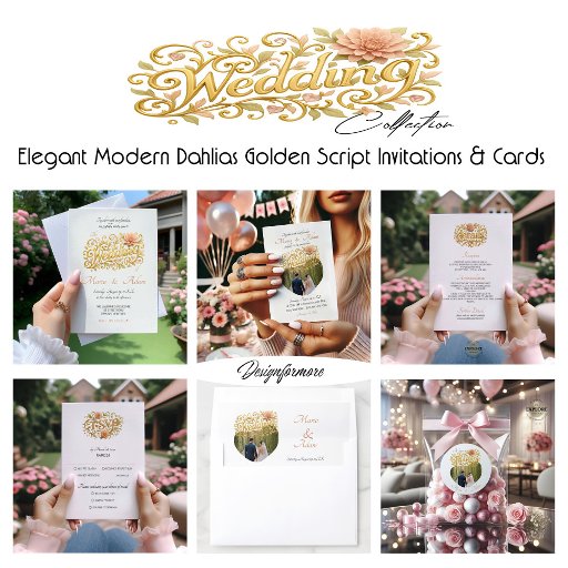 Elegant Blush Dahlias Golden Script Wedding PhotoDesignad av Houria Sabrine