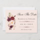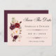 Elegant Blush Pink & Burgundy Roses Wedding stationery Save the Date card.