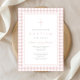 Elegant Blush Pink Gingham Girl Baptism Inbjudningar