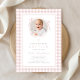Elegant Blush Pink Gingham Photo Girl Baptism Inbjudningar