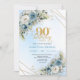 Elegant Bohemian Dusty Blue White Floral 90th Bday Inbjudningar