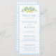 Lägg dig i den charmerande elegansen hos våra noggrant utarbetade italienska kort för bröllopsprogram i Medelhavet. De här programkorten har en intensiv blå bricka ram och citron grenar med blå vita blommor på toppen, och gör att du får en sofistikering av bröllop firande. Lägg till en naturlig botanisk beröring till din speciella dag med de här fängslande korten, perfekt för att förbättra charmen från ditt bohemininspirerade bröllop.