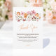 Denna eleganta boho-vildblomma tackkort för bröllopsfesten har en delikat arrangemang av akvarellblommor i mjuka rosa, persika och jordiga toner. Det hjärtliga meddelandet uttrycker tacksamhet för kärlek och stöd som mottagits vid detta speciella tillfälle. Perfekt för att tacka vänner och familj för deras närvaro och genomtänkta gåvor